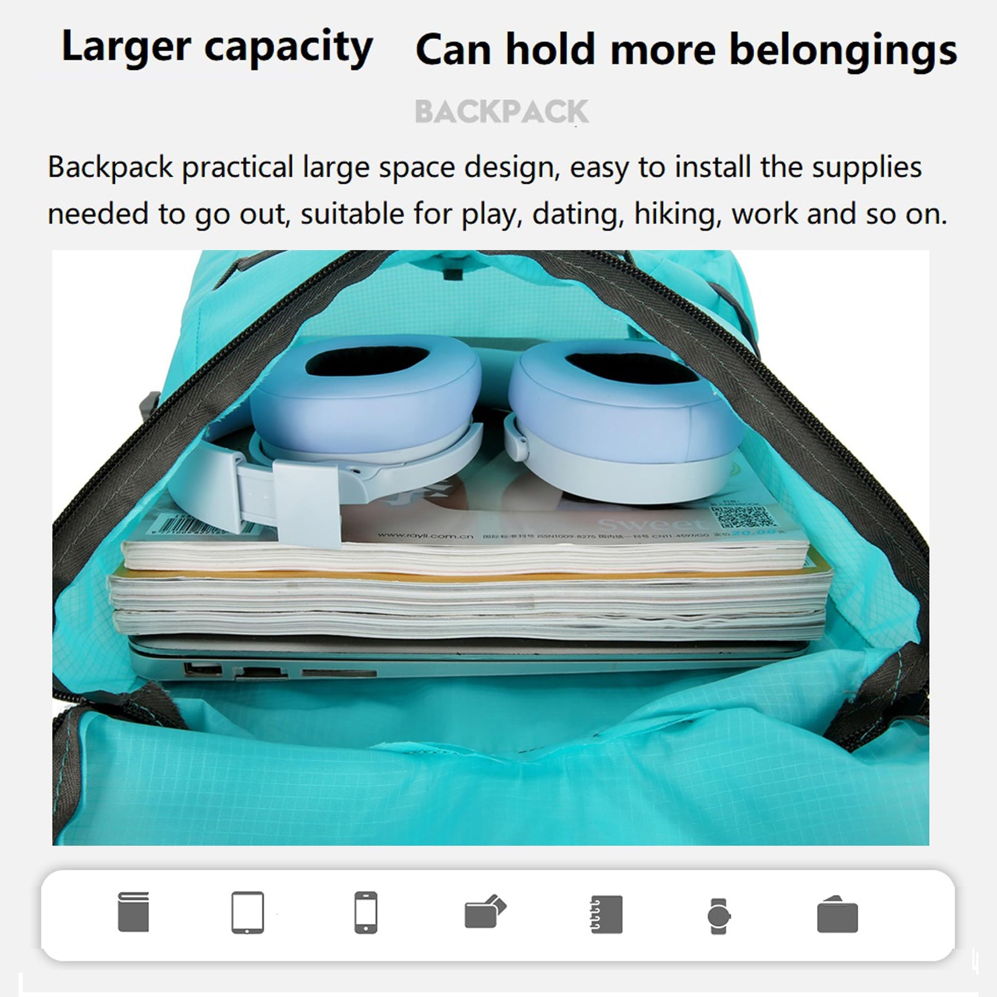 - MULTI-PURPOSE BACKPACK:This hiking backpack for both women and men, great for trevel,beach, water sports.Outdoor activities,camping, hiking ,cycling,mountaineering climbing, snow skiing...Daily gym, swimming, sports-bag, office gift choice.This easy to carry on backpack, fabric like skin, foldable bag can be folded into the backpack, lightweight and no space,be easy to use.