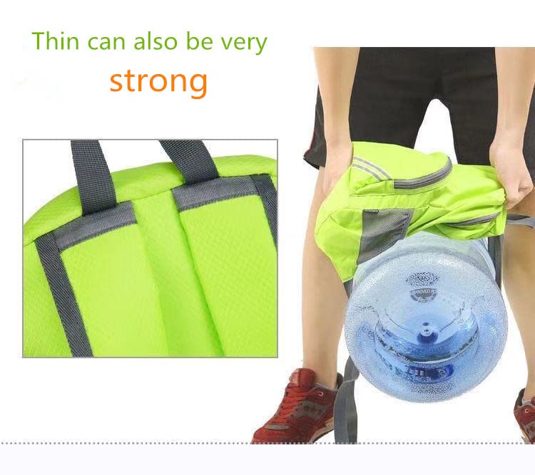 - The front pocket of the backpack has a zipper compartment. The backpack can be folded into a small bag, which is convenient to carry.