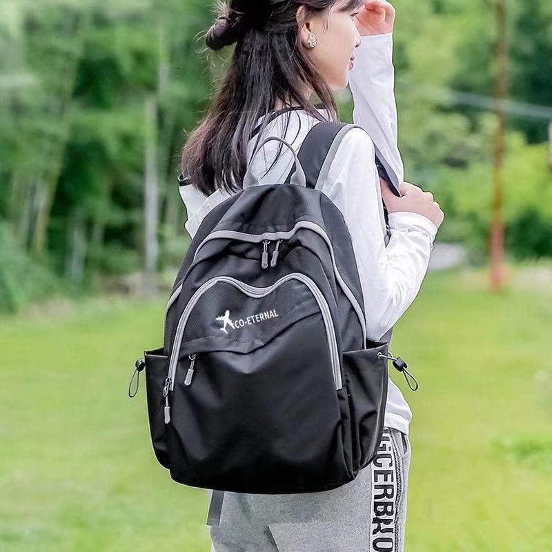 - There is a large capacity main bag and a computer compartment inside the backpack.Two zip pockets in the front and one zip pocket in the back。 There are two side pockets on both sides, which can hold water bottles or umbrellas.
