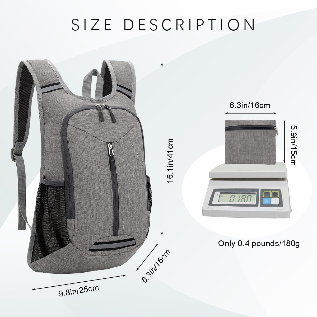 - Small Hiking Backpack: Unfolded dimensions: 16.1x9.8x6.3 inches. Weight: 0.4lb. Despite its small size, this hiking backpack has a reasonable design and sufficient internal space to accommodate various necessary walking equipment and food and water cups.