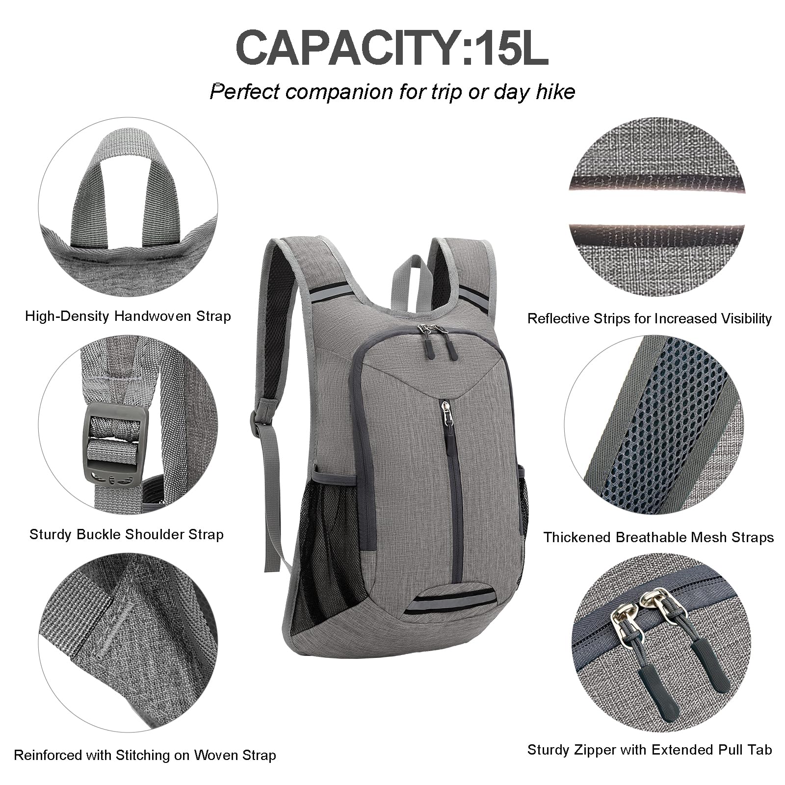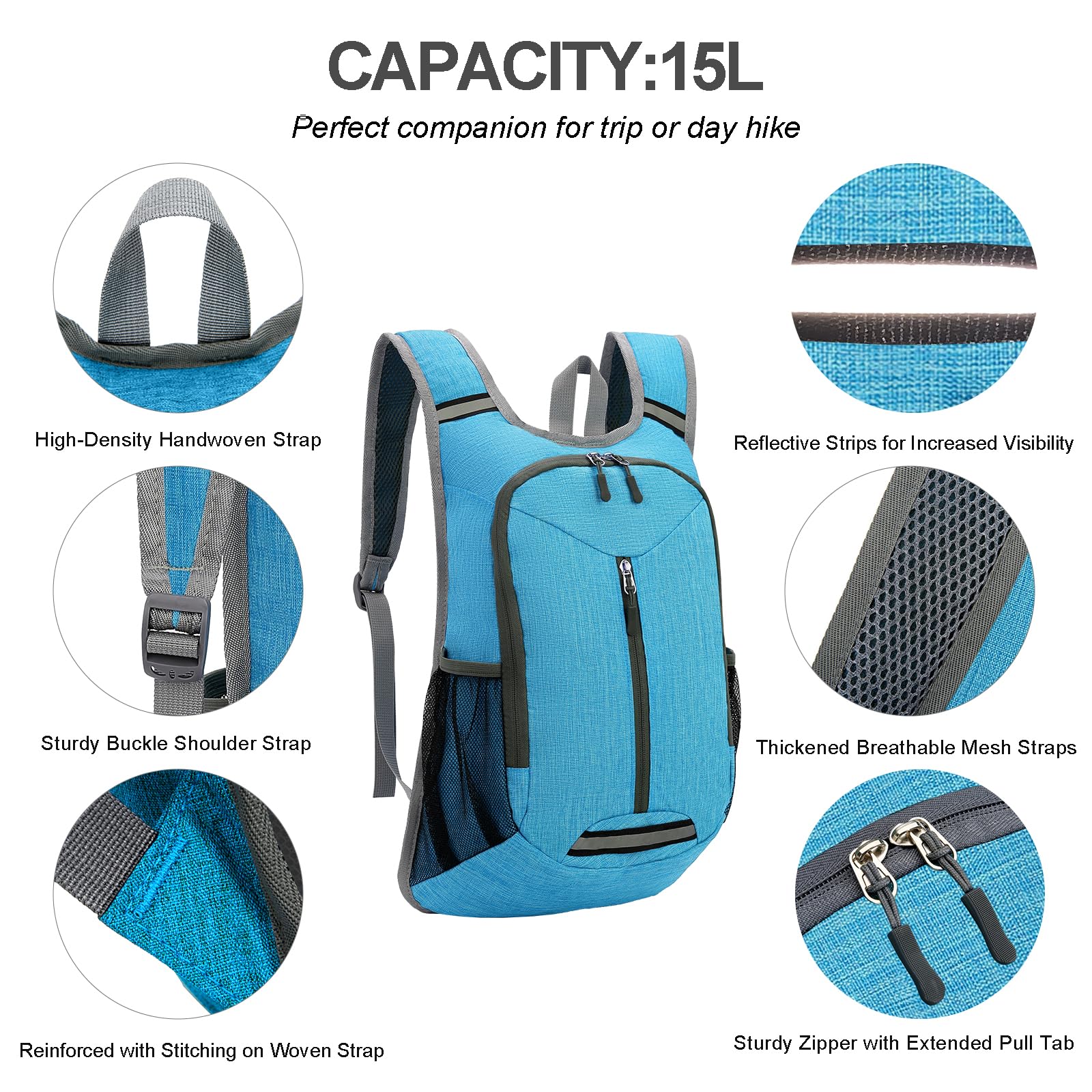 WEREWOLVES 15L Small Hiking Backpack, Travel Lightweight Foldable Packable Casual Outdoor Daypack