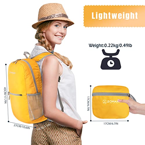- GET THE AWARD-WINNING ZOMAKE ULTRA LIGHTWEIGHT FOLDABLE BACKPACK: With the light performance and high quality of our ZOMAKE ultra lightweight backpack,we have provided high-quality services to 500,000 people in the world and received praise from many people.I believe that our light foldable backpack will be the perfect partner in your life.You can accompany you on foot,vacation,shopping,cycling,and exercise!